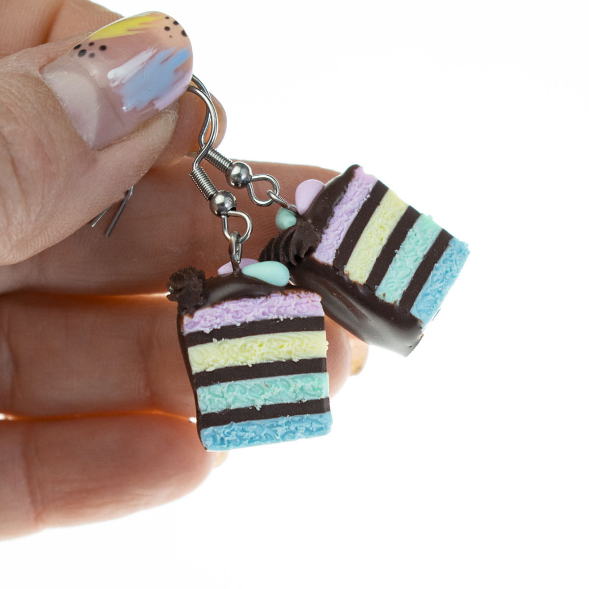 Torcik wielkanocny tęczowy kolczyki wiszące lub klipsy